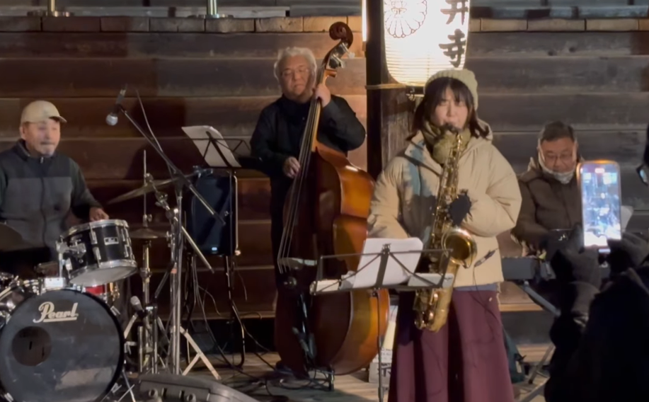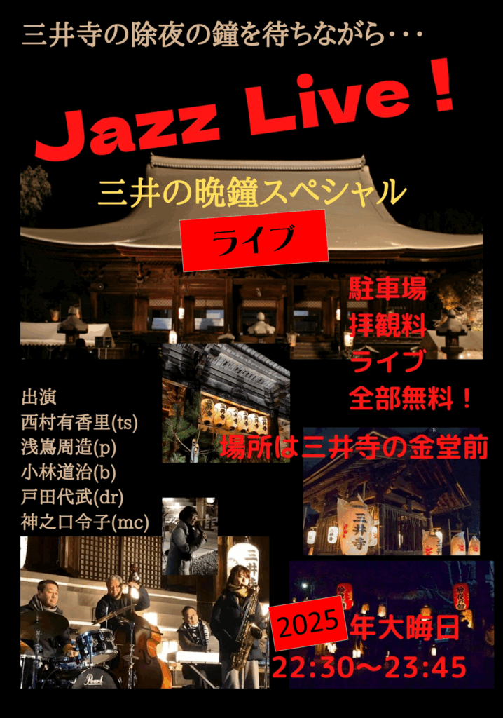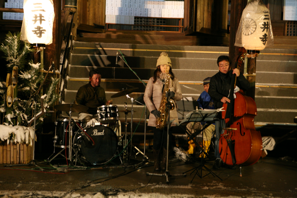 お陰様で、今年も三井寺の金堂の前で演奏して一年を締めくくることが出来ました。