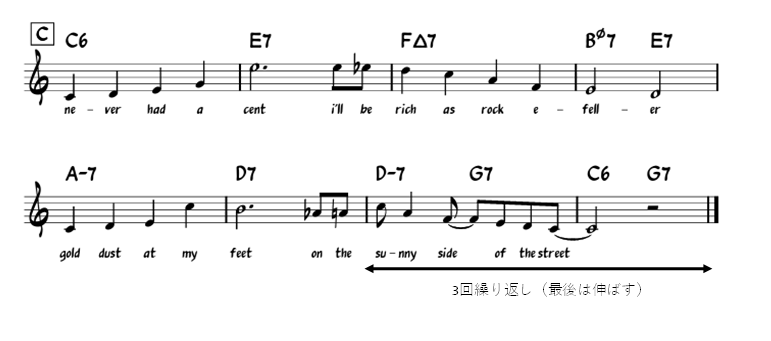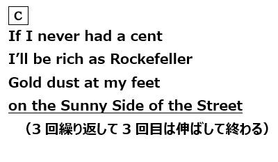 下のイメージはOn The Sunny Side Of The Streetの最後の部分の歌詞カードに相当するものだと思ってください。